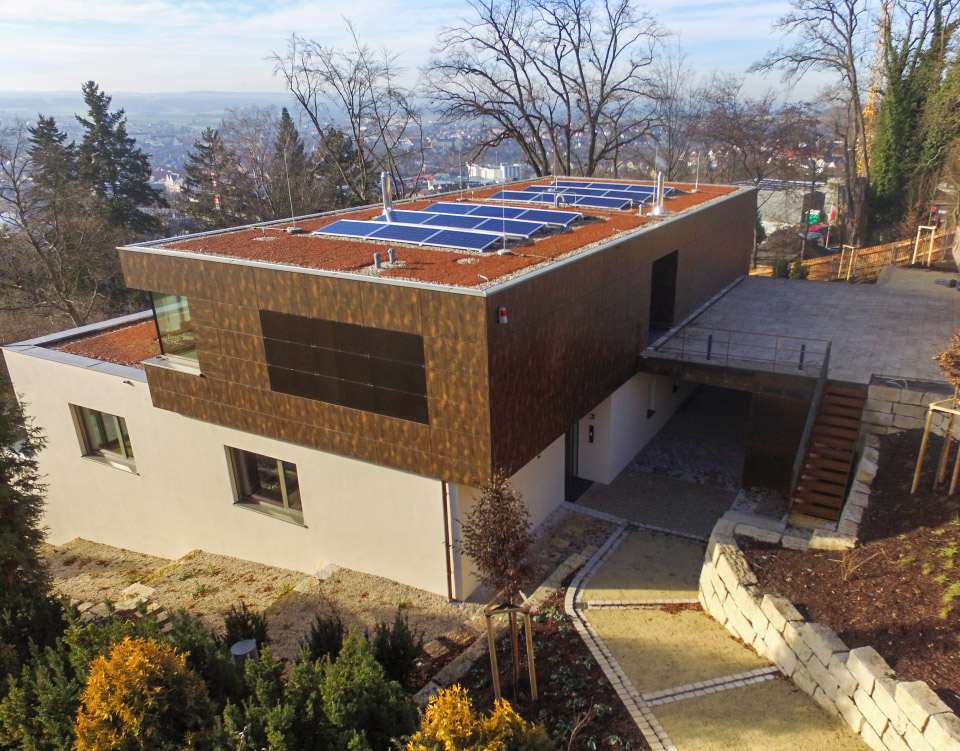 Mehrere Zufahrtsmöglichkeiten auf unterschiedlichen Ebenen sorgen für eine funktionale und durchdachte Erschließung.